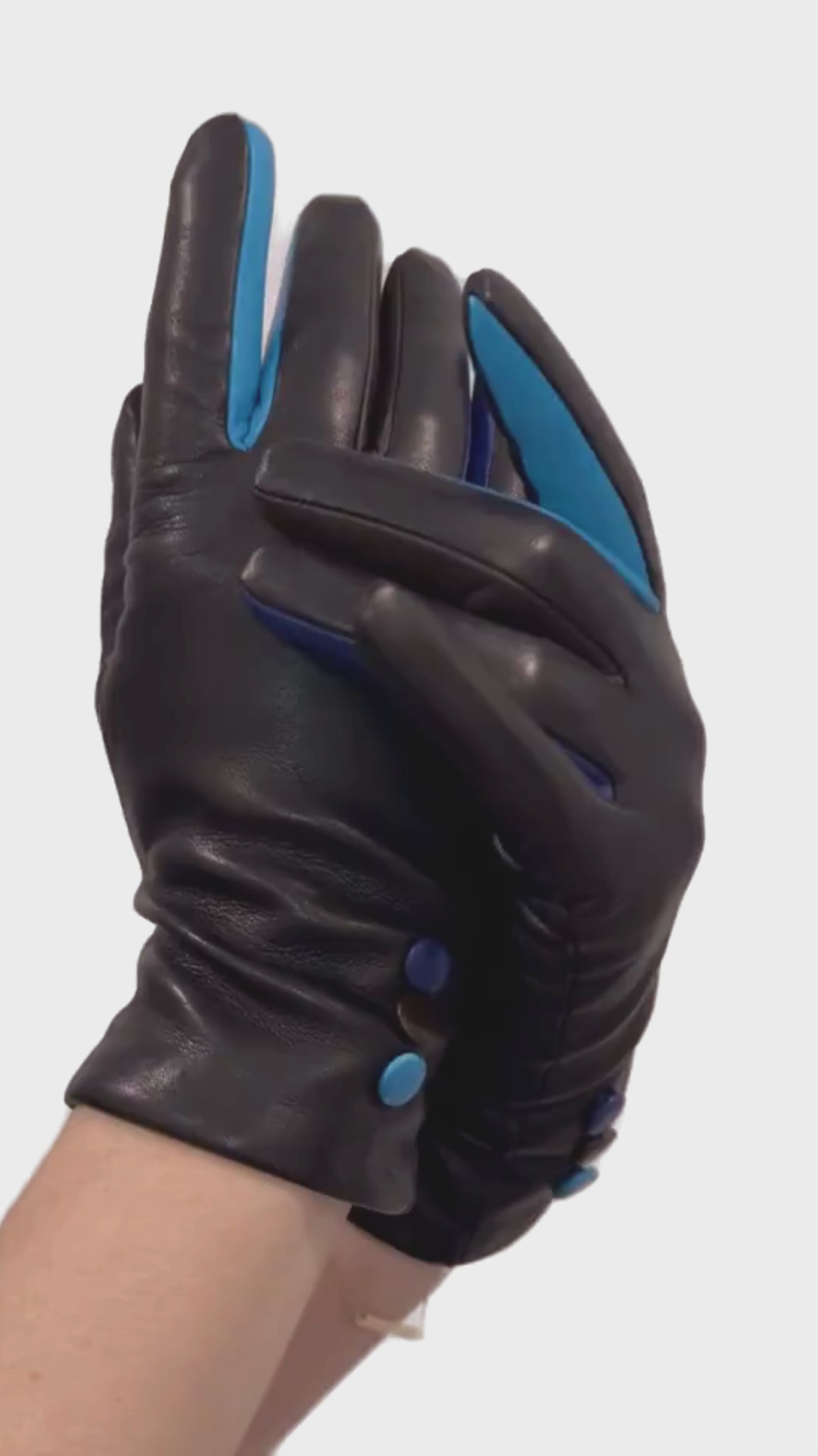 Black, Royal Blue, Brown and Turkoise Leather Gloves