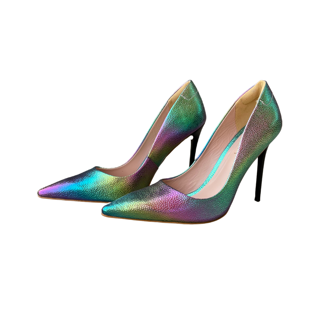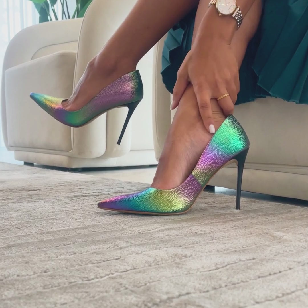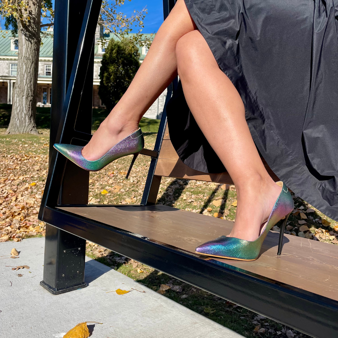 Command attention and make a statement with our Dare Pump. Eye-catching and bold, this pump will elevate any outfit and leave a lasting impression. Pair it with black, green, yellow or violet to complete your luxurious look. This shoe IS the accessory you never knew you needed!