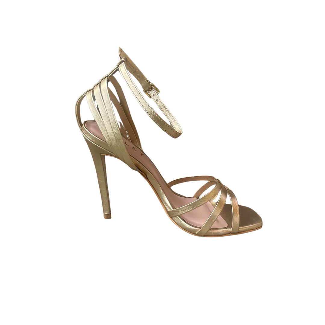 Step into luxury with the Manuela Pump. Crafted from light gold nappa leather, this elegant evening shoe features delicate strappy details that add a touch of sexy sophistication to any cocktail dress or gown. Elevate your style and make a statement at your next event.